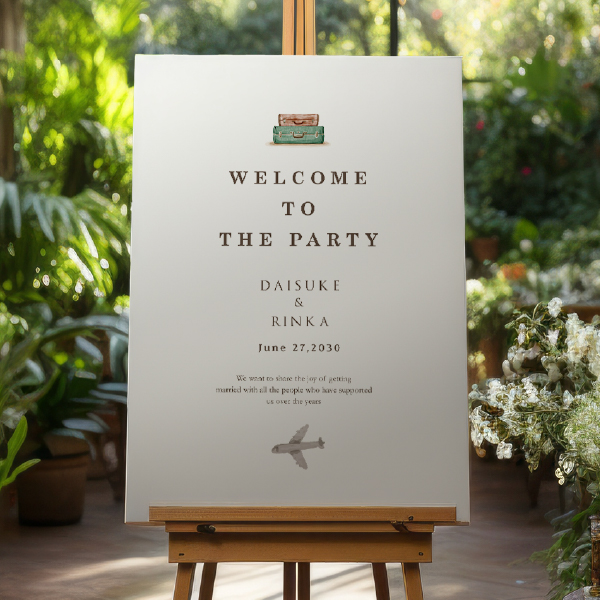 旅行好きのおふたりにぴったりのウェルカムボード。ナチュラルな雰囲気で自然体のおふたりを表現してくれます。ナチュラル・カジュアルウェディングにおすすめです!