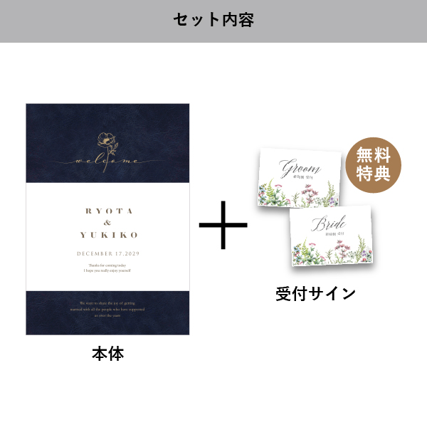 | 無料特典 | 受付サイン1組(新郎用×1組、新婦用×1組) |