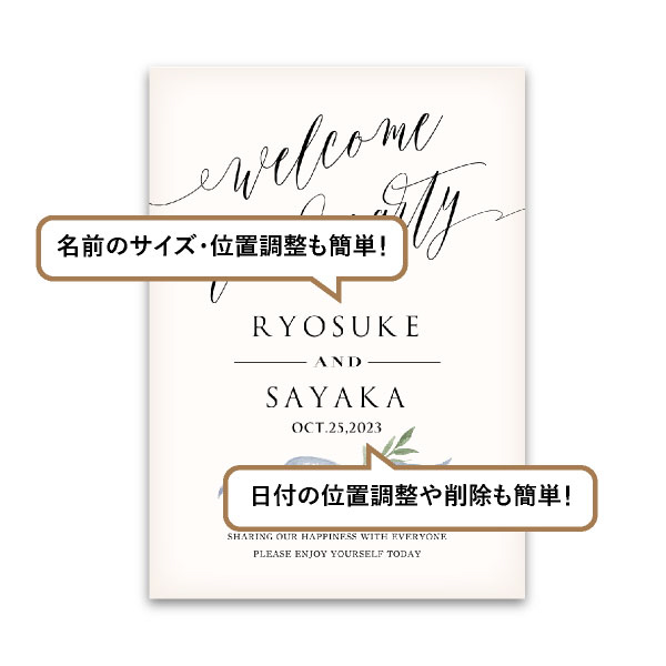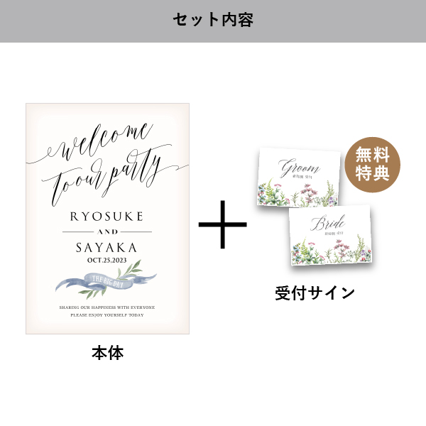 | 無料特典 | 受付サイン1組(新郎用×1組、新婦用×1組) |