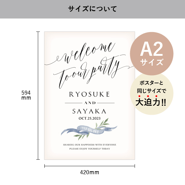 フラットなフォルムにデザインが大きく入るA2サイズのパネルは、ゲストをお出迎えするウェルカムボードとしてピッタリです!
