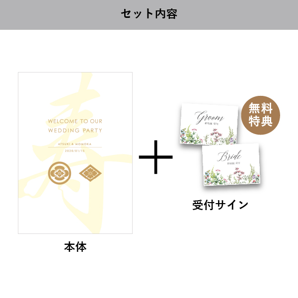 | 無料特典 | 受付サイン1組(新郎用×1組、新婦用×1組) |