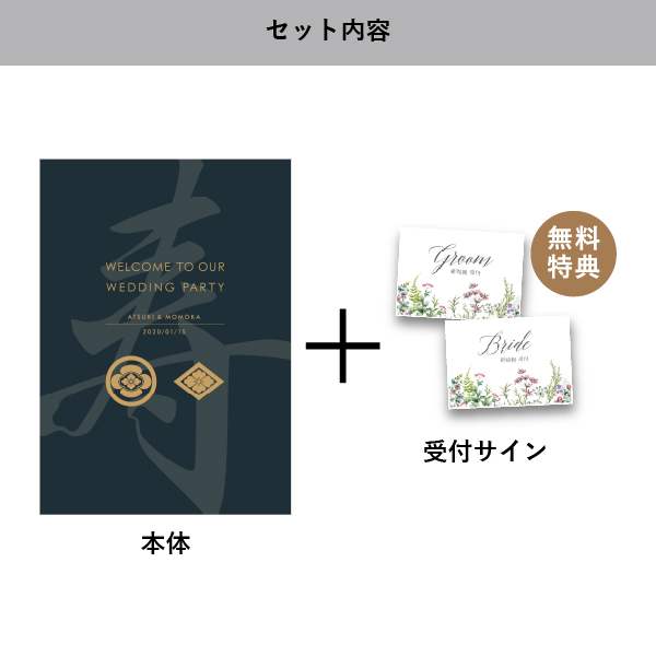 | 無料特典 | 受付サイン1組(新郎用×1組、新婦用×1組) |