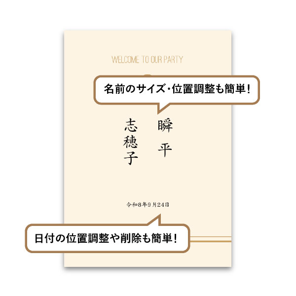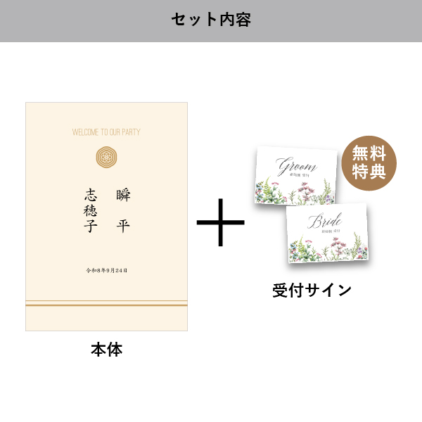 | 無料特典 | 受付サイン1組(新郎用×1組、新婦用×1組) |