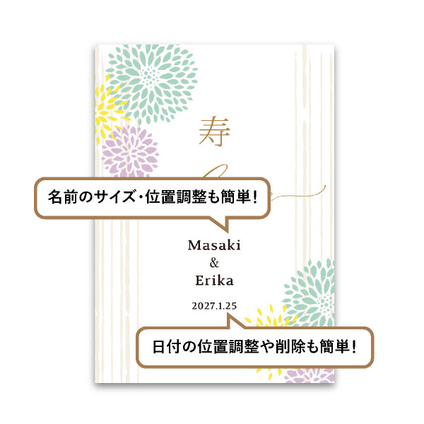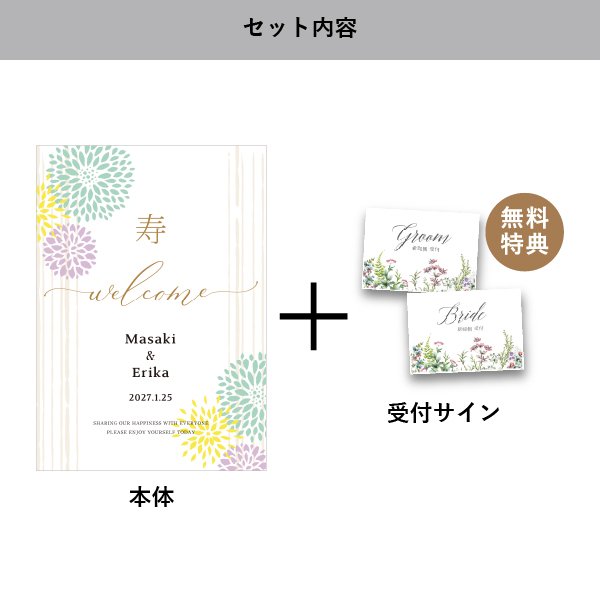 | 無料特典 | 受付サイン1組(新郎用×1組、新婦用×1組) |