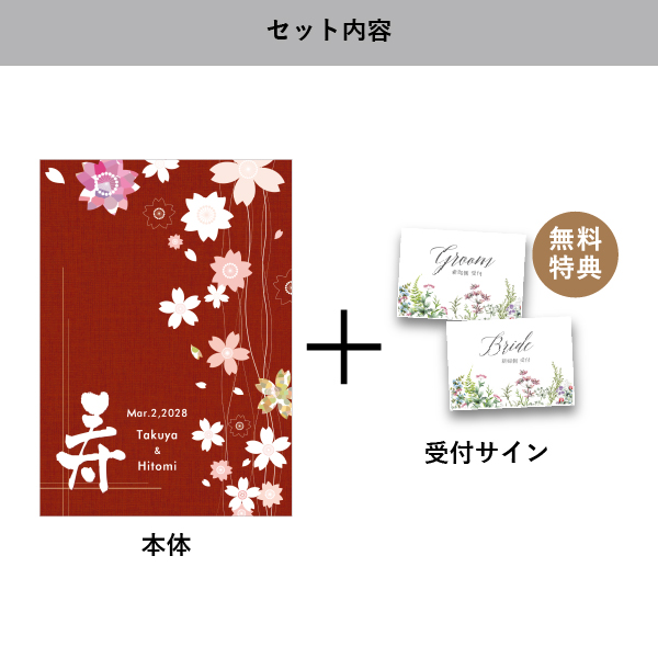 | 無料特典 | 受付サイン1組(新郎用×1組、新婦用×1組) |