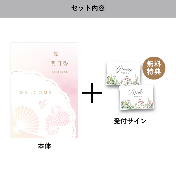 | 無料特典 | 受付サイン1組(新郎用×1組、新婦用×1組) |