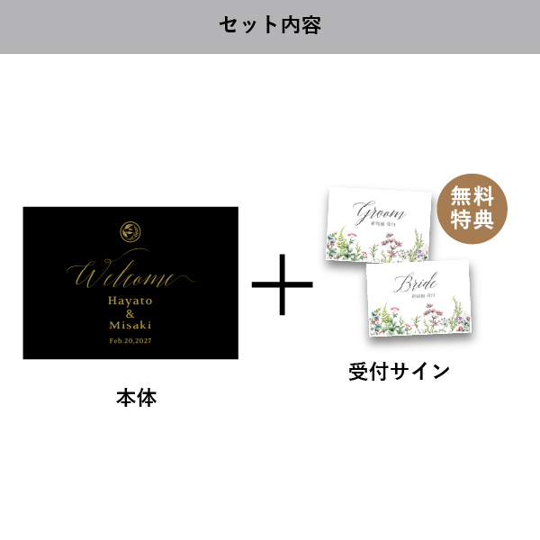 | 無料特典 | 受付サイン1組(新郎用×1組、新婦用×1組) |
