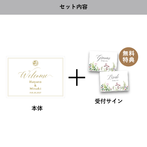 | 無料特典 | 受付サイン1組(新郎用×1組、新婦用×1組) |