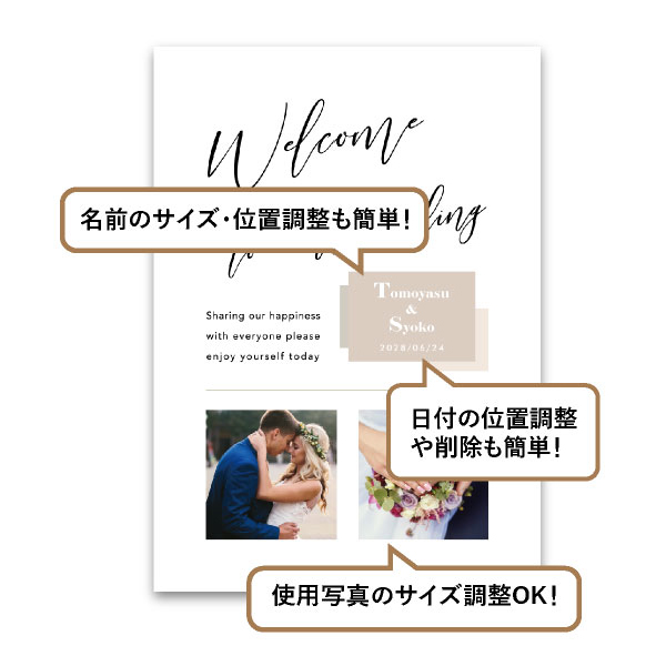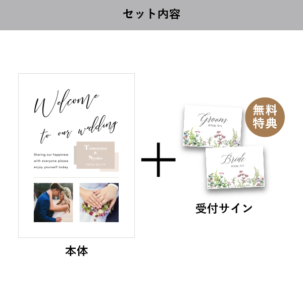 | 無料特典 | 受付サイン1組(新郎用×1組、新婦用×1組) |