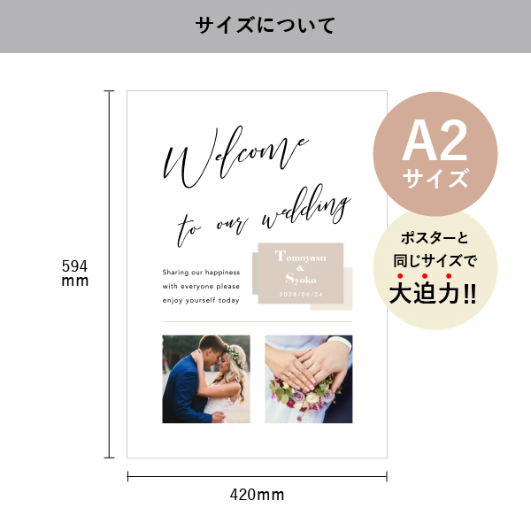 フラットなフォルムにデザインが大きく入るA2サイズのパネルは、ゲストをお出迎えするウェルカムボードとしてピッタリです!