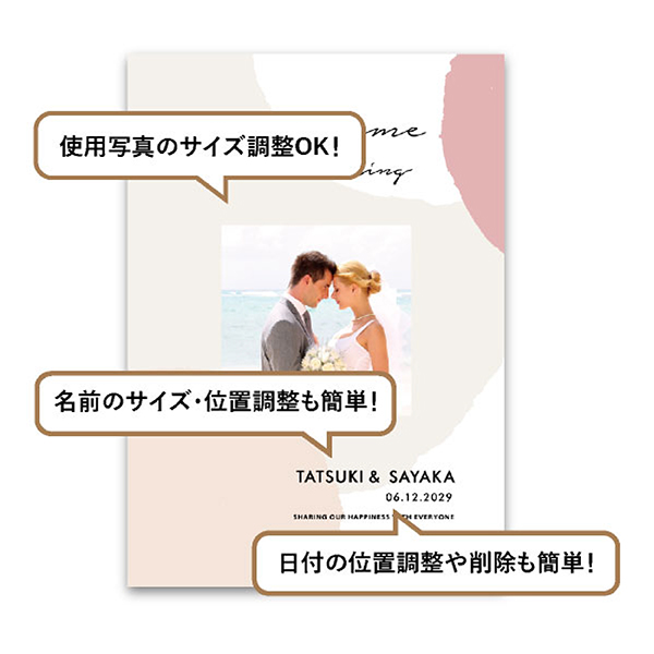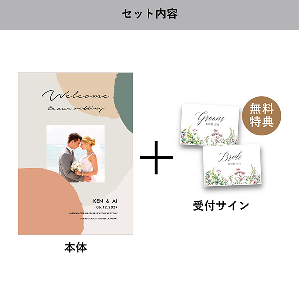 | 無料特典 | 受付サイン1組(新郎用×1組、新婦用×1組) |