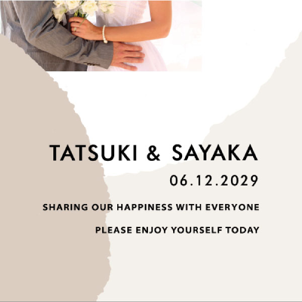 | 無料特典 | 受付サイン1組(新郎用×1組、新婦用×1組) |
