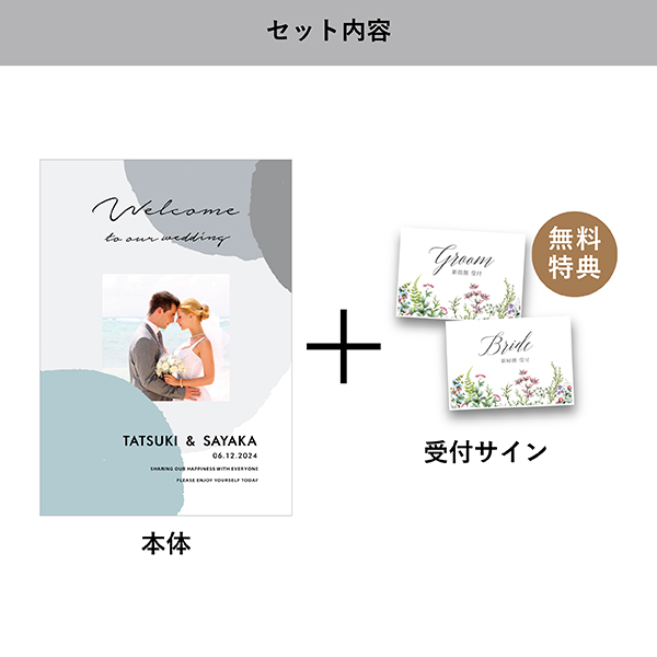 | 無料特典 | 受付サイン1組(新郎用×1組、新婦用×1組) |