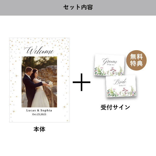 | 無料特典 | 受付サイン1組(新郎用×1組、新婦用×1組) |