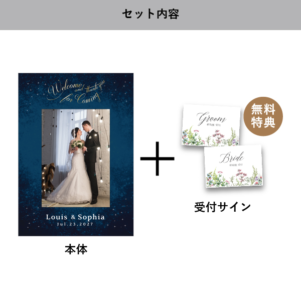 | 無料特典 | 受付サイン1組(新郎用×1組、新婦用×1組) |