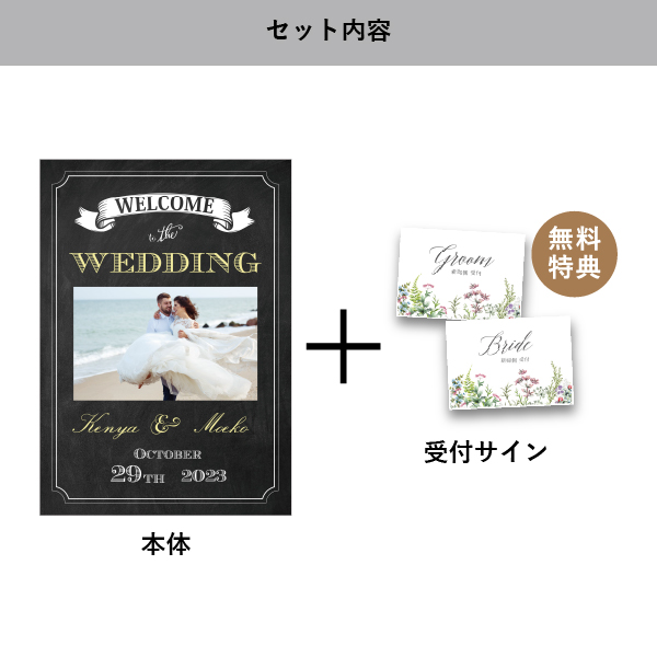 | 無料特典 | 受付サイン1組(新郎用×1組、新婦用×1組) |