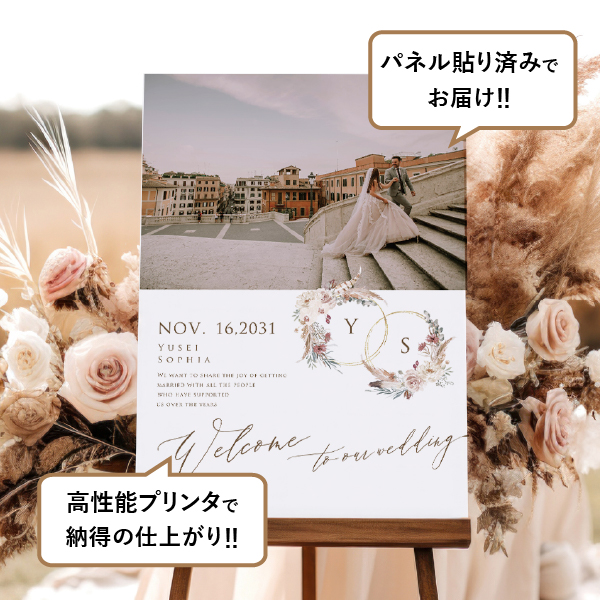 フォトウェルカムボード(A2パネル)マリアージュリース ブラウン|ウェルカムボードならPIARY(ピアリー)