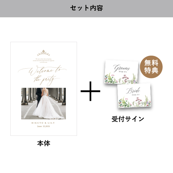 | 無料特典 | 受付サイン1組(新郎用×1組、新婦用×1組) |