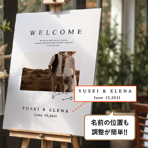 | 無料特典 | 受付サイン1組(新郎用×1組、新婦用×1組) |
