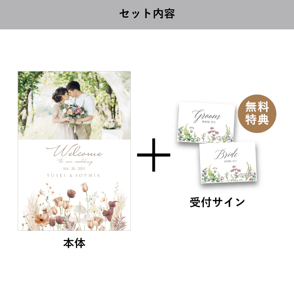 | 無料特典 | 受付サイン1組(新郎用×1組、新婦用×1組) |