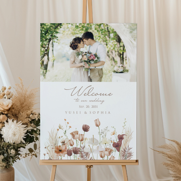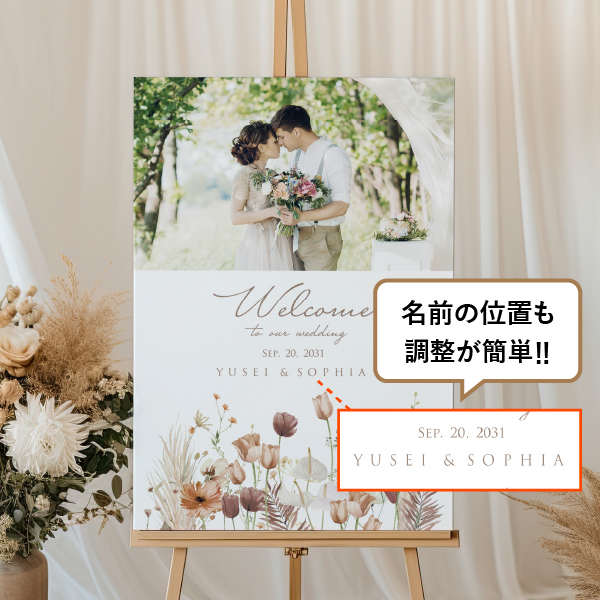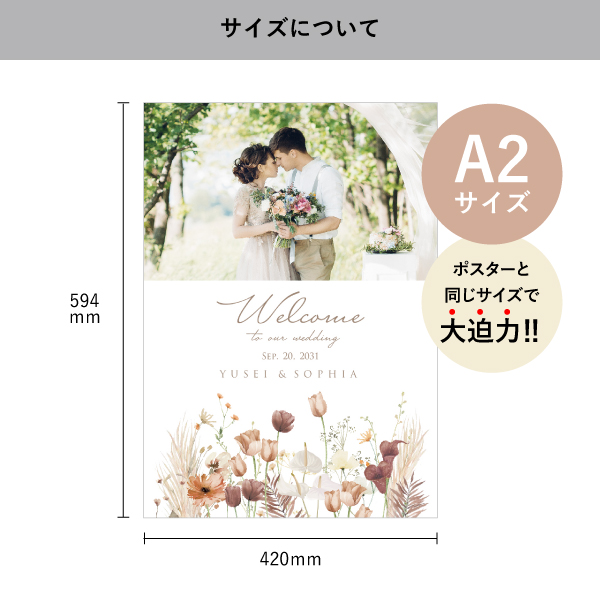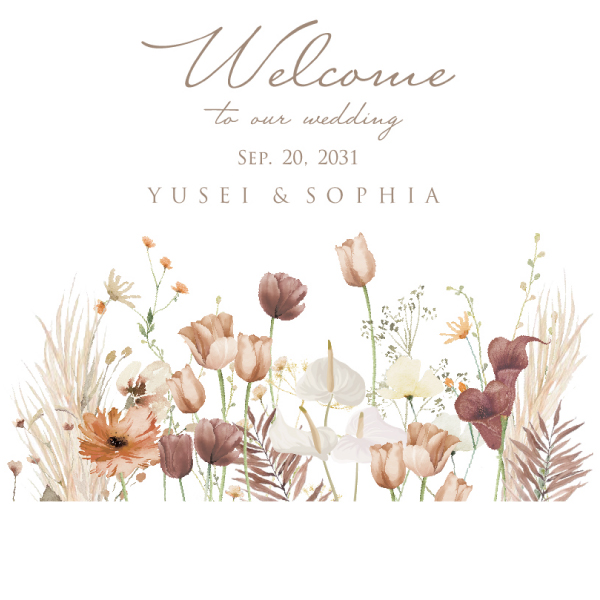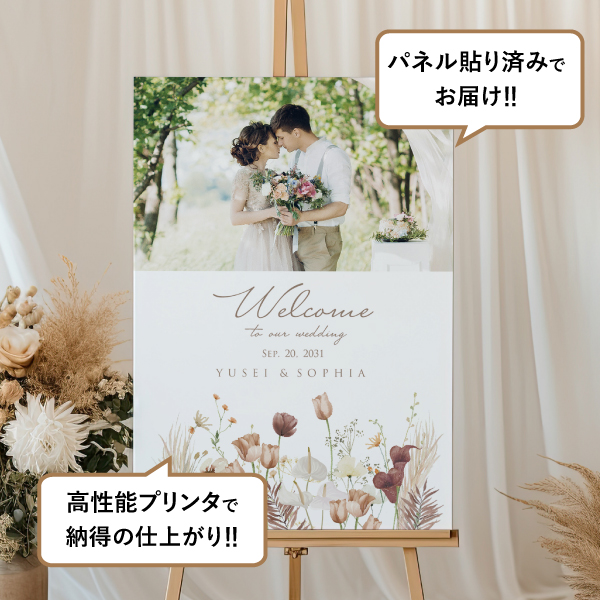 フォトウェルカムボード(A2パネル)エアリーブーケ パンパスブラウン|ウェルカムボードならPIARY(ピアリー)