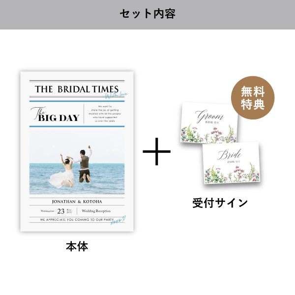 | 無料特典 | 受付サイン1組(新郎用×1組、新婦用×1組) |