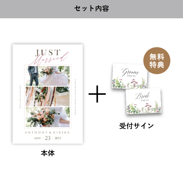 | 無料特典 | 受付サイン1組(新郎用×1組、新婦用×1組) |