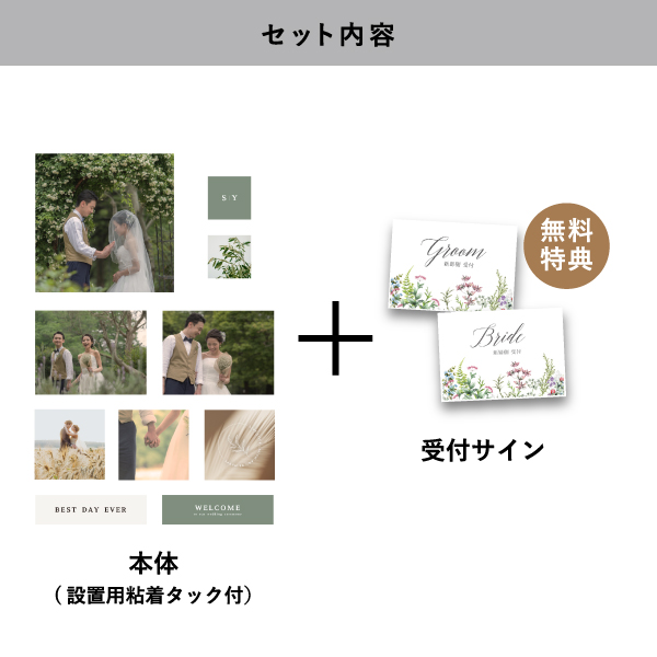 | 無料特典 | 受付サイン1組(新郎用×1組、新婦用×1組) |