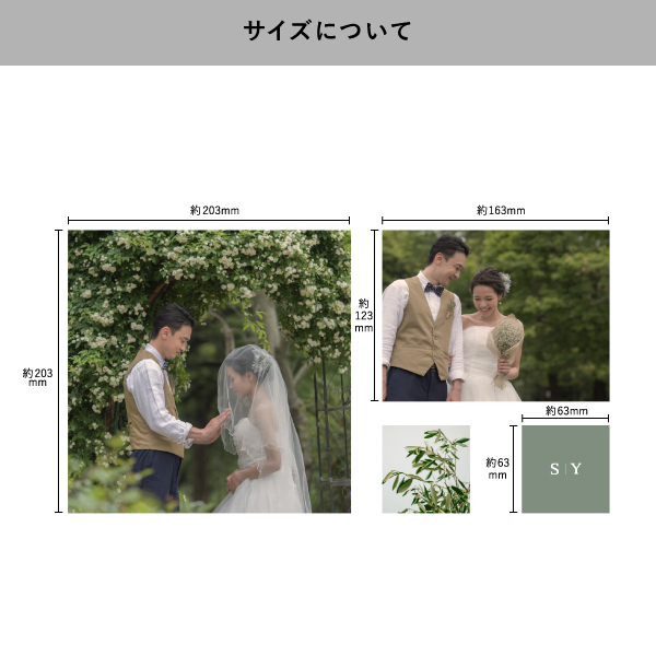 固定パネルのうち1枚は、おふたりのイニシャルをお入れできます。