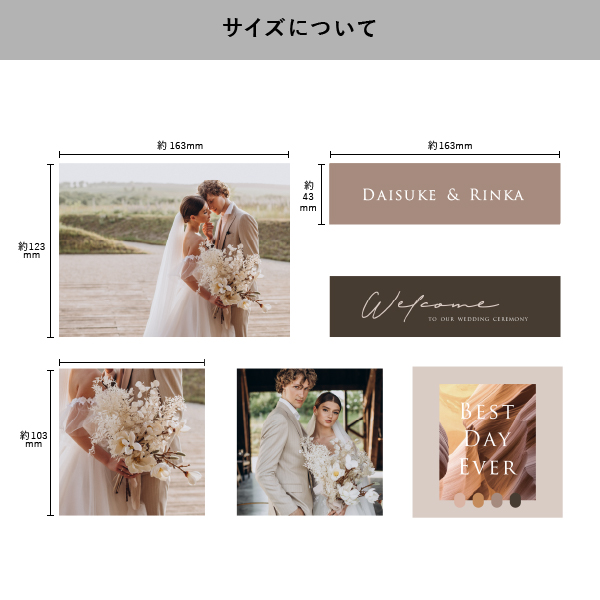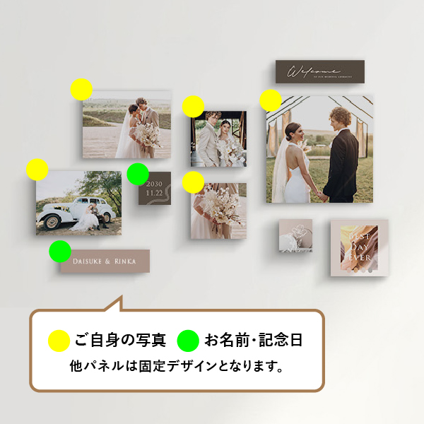固定パネルには、おふたりのお名前や記念日をお入れできます。