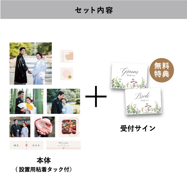 | 無料特典 | 受付サイン1組(新郎用×1組、新婦用×1組) |