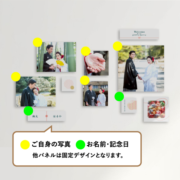 固定パネルには、おふたりの名前や記念日をお入れできます。
