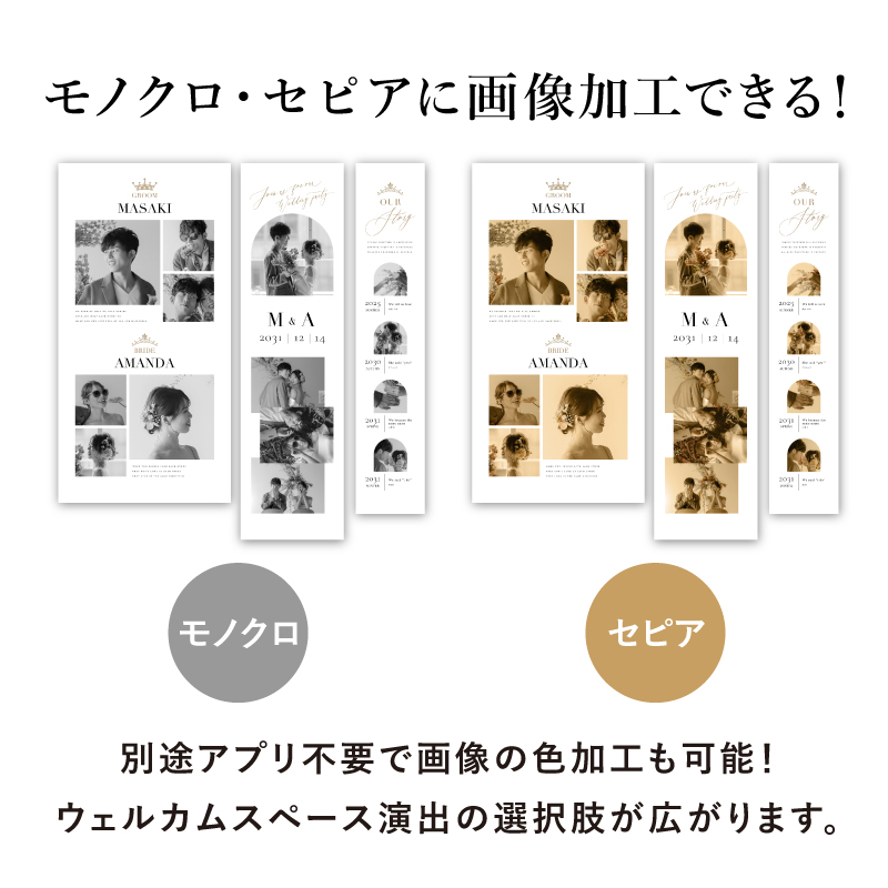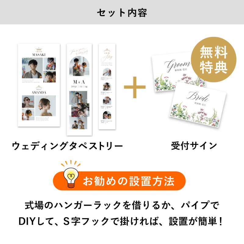 | 無料特典 | 受付サイン1組(新郎用×1組、新婦用×1組) |