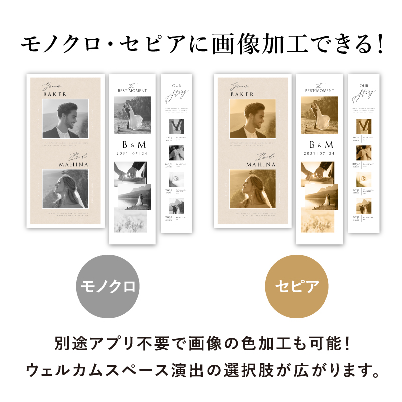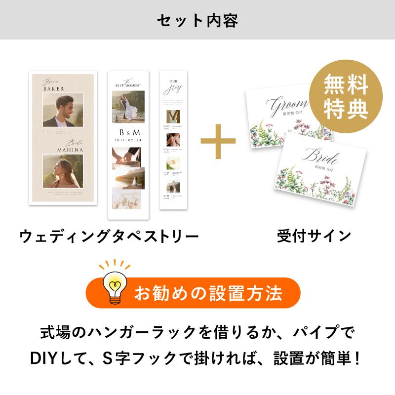 | 無料特典 | 受付サイン1組(新郎用×1組、新婦用×1組) |