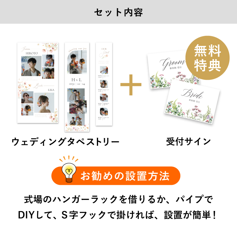 | 無料特典 | 受付サイン1組(新郎用×1組、新婦用×1組) |