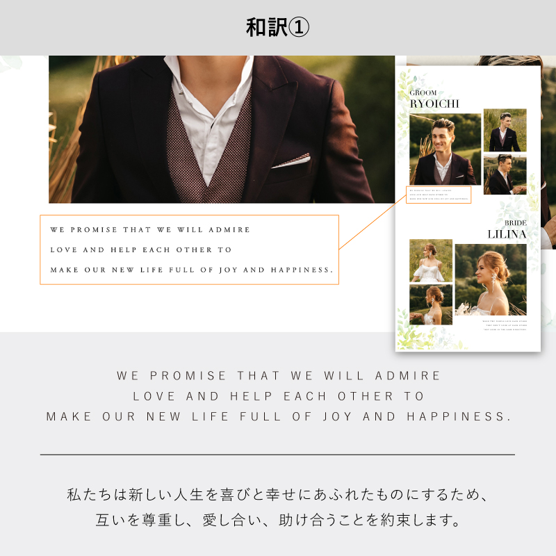 新郎用×1枚、新婦用×1枚の合計2枚をお届けいたします。