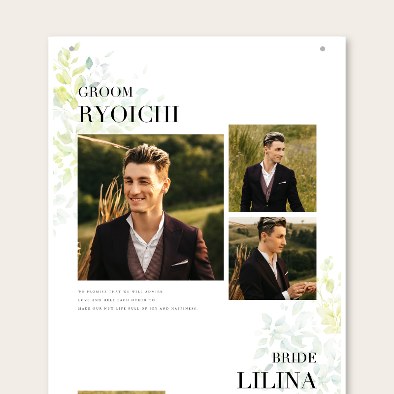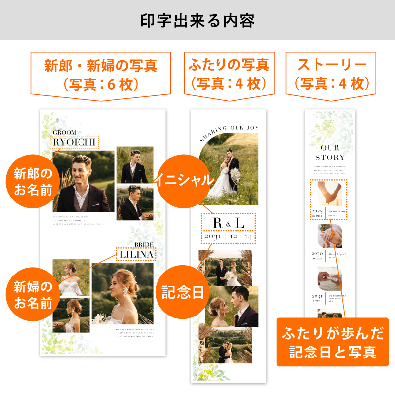 | 無料特典 | 受付サイン1組(新郎用×1組、新婦用×1組) |