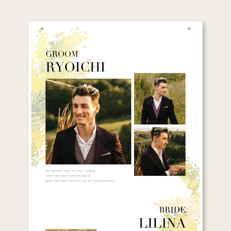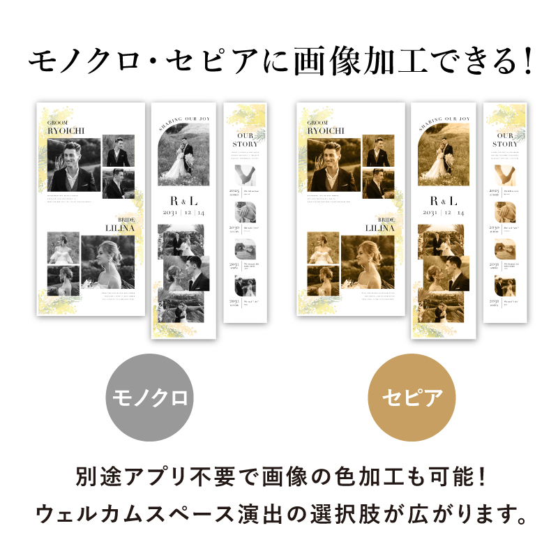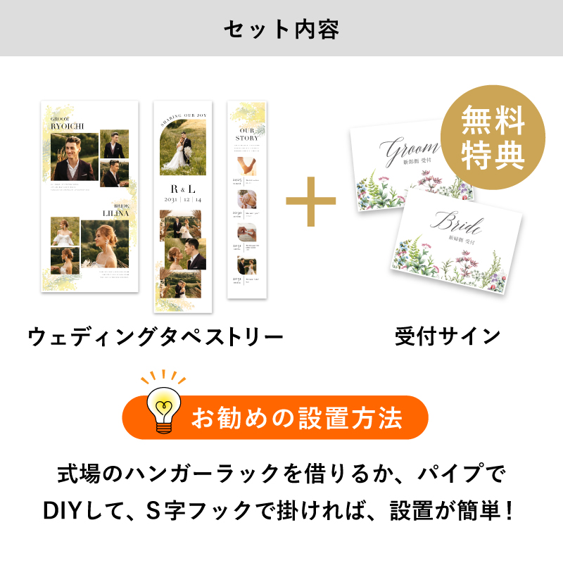 | 無料特典 | 受付サイン1組(新郎用×1組、新婦用×1組) |