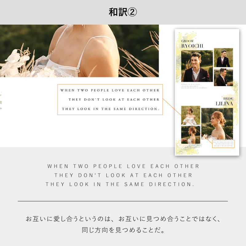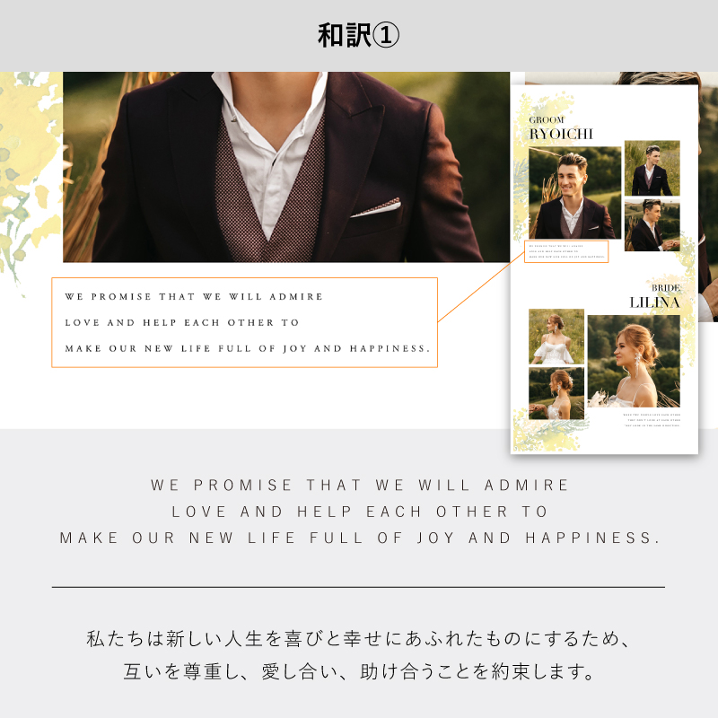 新郎用×1枚、新婦用×1枚の合計2枚をお届けいたします。