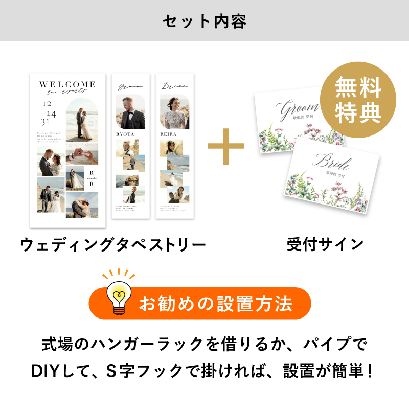 | 無料特典 | 受付サイン1組(新郎用×1組、新婦用×1組) |