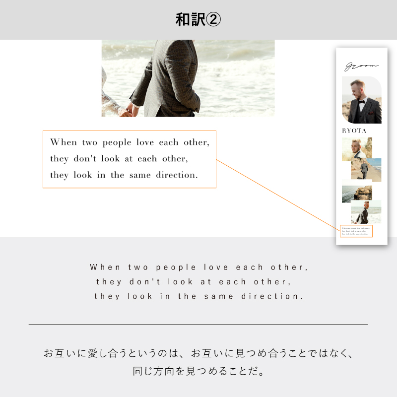 新郎用×1枚、新婦用×1枚の合計2枚をお届けいたします。