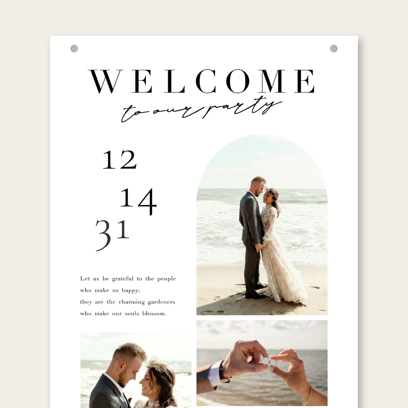 ウェルカムスペースでは写真が大きく入るインパクトのあるサイズで、おふたりの代わりにゲストをお出迎え!前撮り写真や思い出の写真を使いたい方におすすめです。