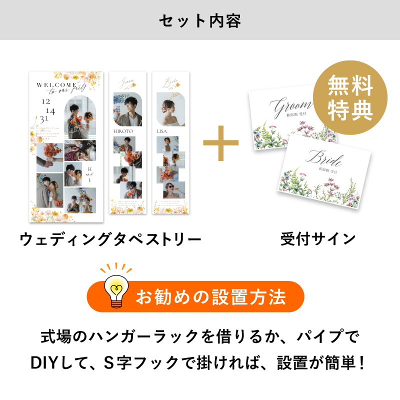 | 無料特典 | 受付サイン1組(新郎用×1組、新婦用×1組) |