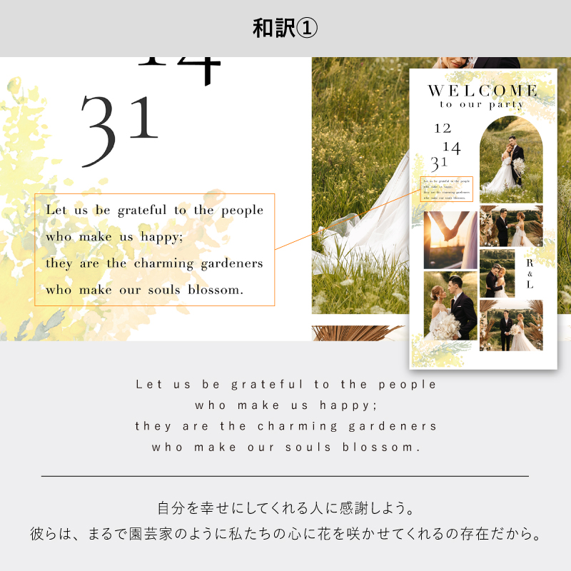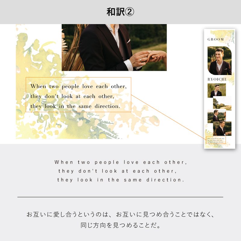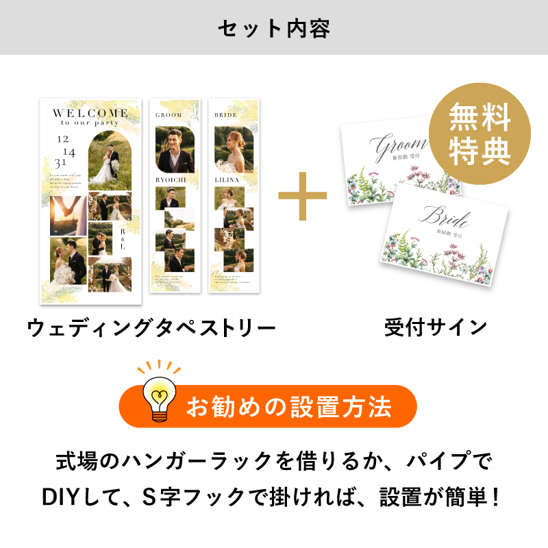 | 無料特典 | 受付サイン1組(新郎用×1組、新婦用×1組) |