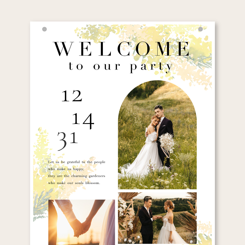 ウェルカムスペースでは写真が大きく入るインパクトのあるサイズで、おふたりの代わりにゲストをお出迎え!前撮り写真や思い出の写真を使いたい方におすすめです。