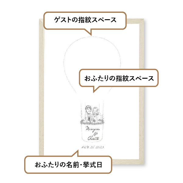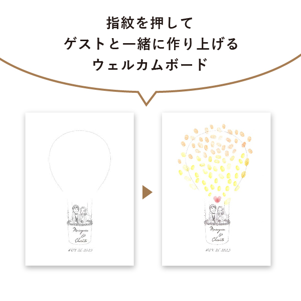 おふたりを乗せた気球をゲストの指紋で鮮やかに描きましょう!おふたりの指紋で作るハートマークを燃料にして、幸せな未来へと向かいます。