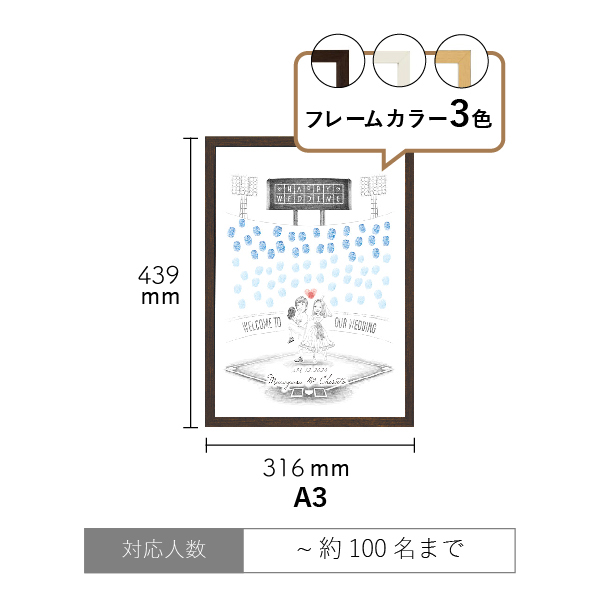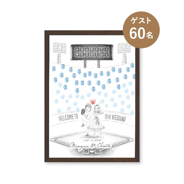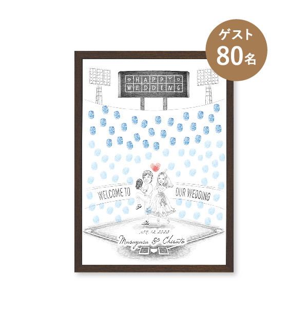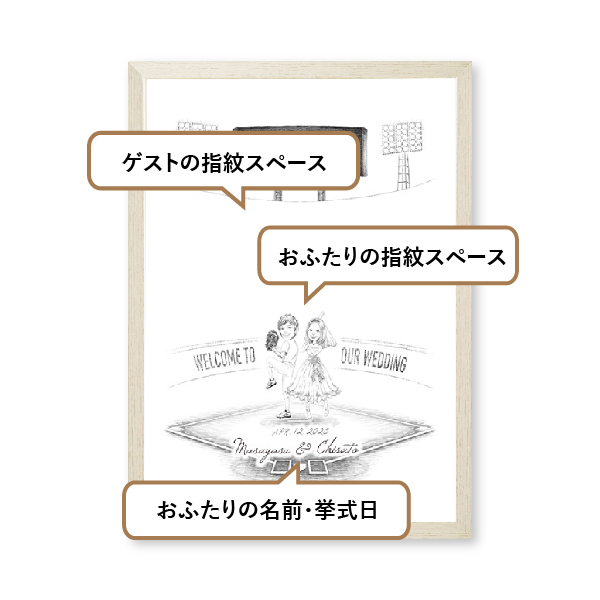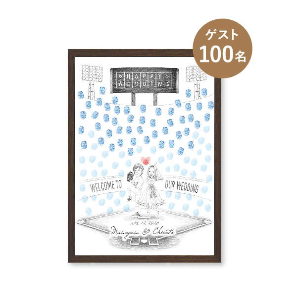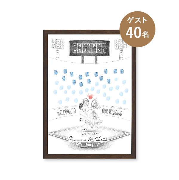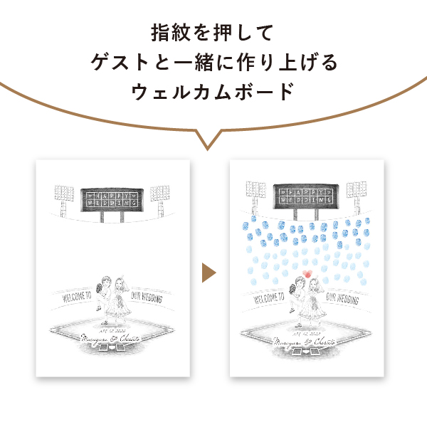 野球が好きな方にぴったりなデザイン!観客席にはおふたりを見守るようにゲストの指紋が並びます。夫婦一丸となって人生というペナントレースを進むおふたりを応援。