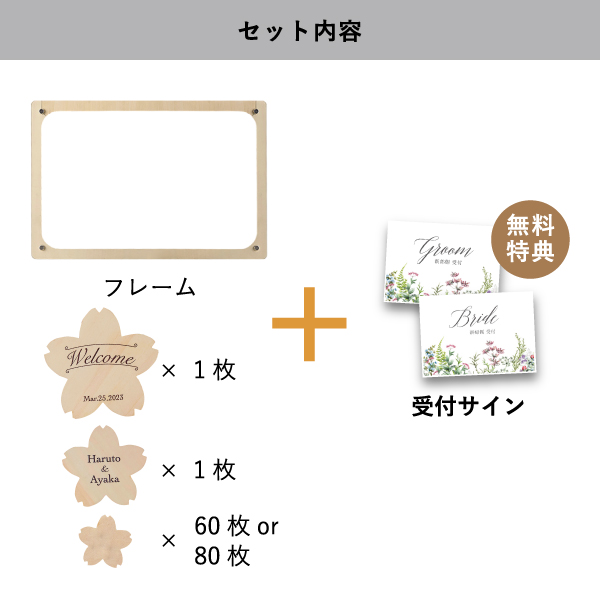 | 無料特典 | 受付サイン1組(新郎用×1組、新婦用×1組) |