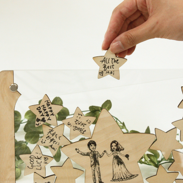 ピースにゲストさまからのお祝いメッセージを記入してもらえば、他にはない世界に一つだけのウェルカムボードに。