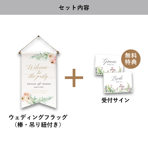 | 無料特典 | 受付サイン1組(新郎用×1組、新婦用×1組) |